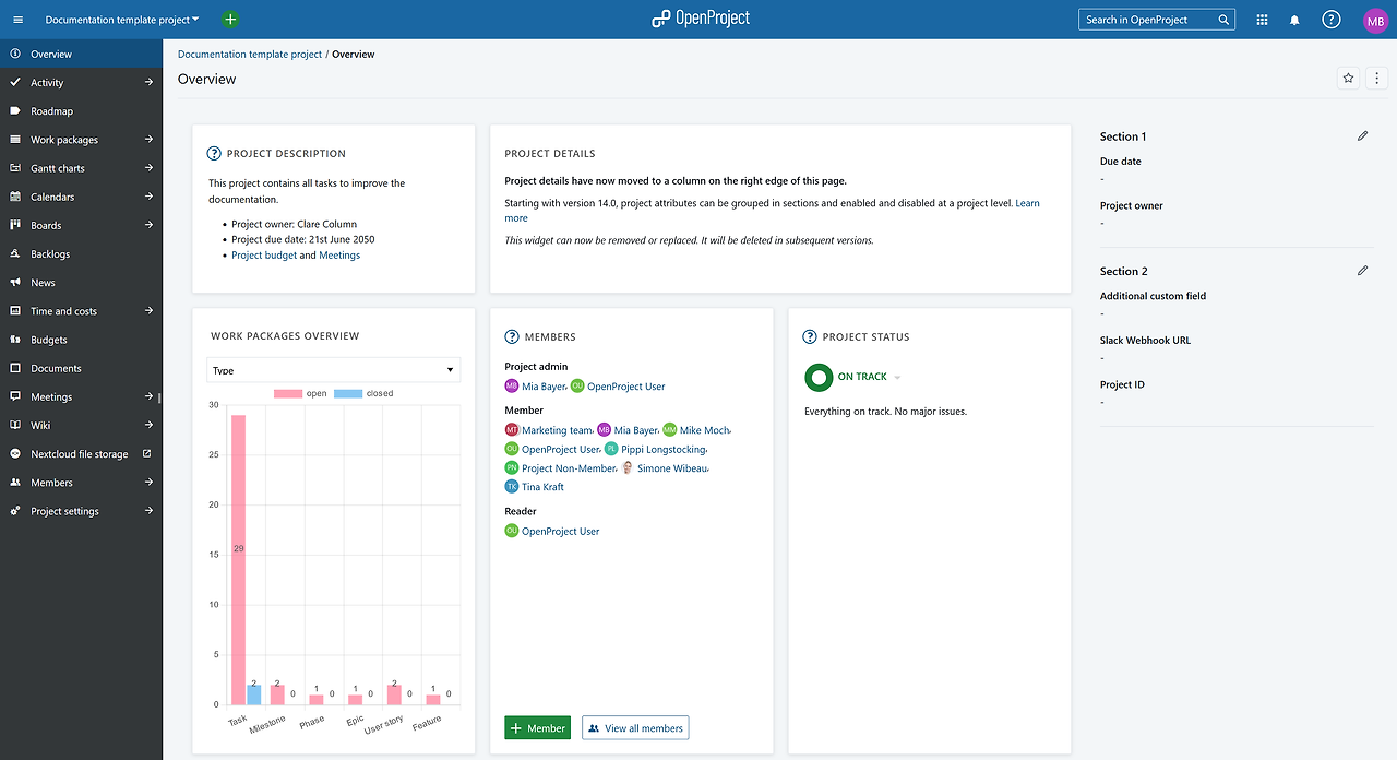 OpenProject는 오픈소스 프로젝트 관리 소프트웨어로, 클래식한 프로젝트 관리와 애자일 방식을 모두 지원합니다. 2011년에 시작된 이 프로젝트는 Redmine의 포크로 시작되었지만, 이제는 완전히 독립적인 소프트웨어로 발전했습니다.