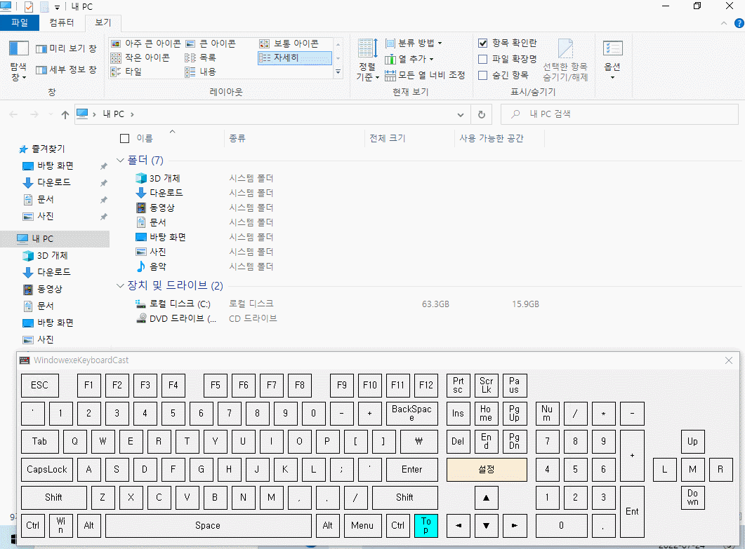 자 그럼 실습을 해보도록 하겠습니다. 탐색기에서 세부정보창을 빠르게 띄워 봅니다.