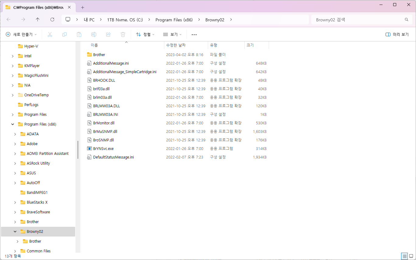 - 이동된 폴더 및 내용을 보고 프로그램이 어떤 프로그램인지를 식별하면 되겠습니다.