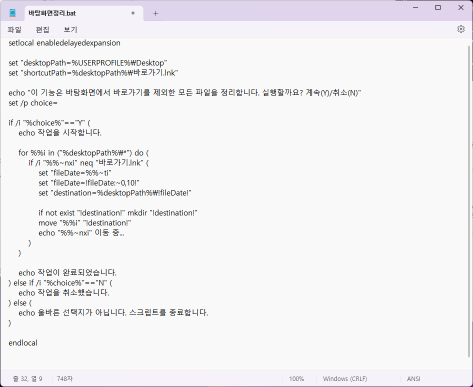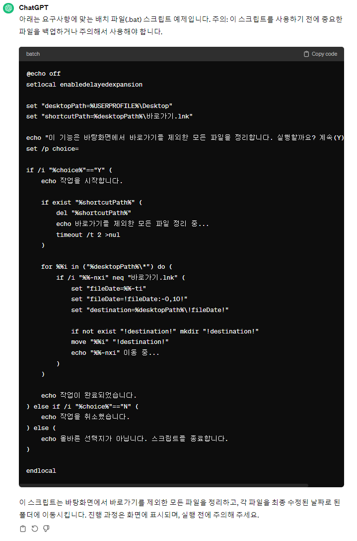 자, 오늘은 가볍게 인공지능을 활용해 바탕화면을 정리하는 부분을 배치 스크립트로 만들어 보았습니다.