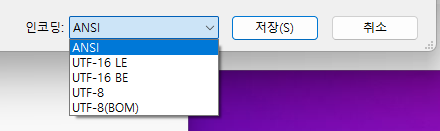 저장할때 반드시 ANSI 방식으로 저장하시는거 잊지 마세요.