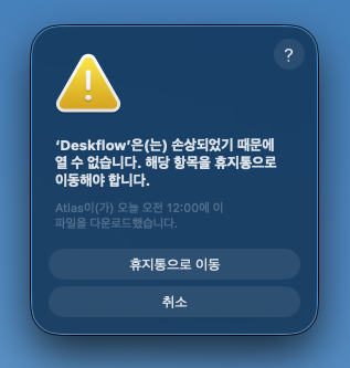 최근 맥의 보안이 강화되면서, 아래와 같이 표시 될 수도 됩니다.