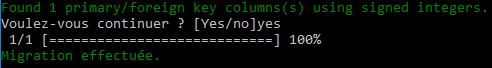 ※ 명령어를 입력은 오류메시지 상에서 php~ 로 시작되지만, Synology 에서는 여러개의 php가 설치되어 있기 때문에 버전을 지정하여 실행하기 위해 php72 또는 php74 등으로 시작해서 마이그레이션 명령어를 입력합니다.
