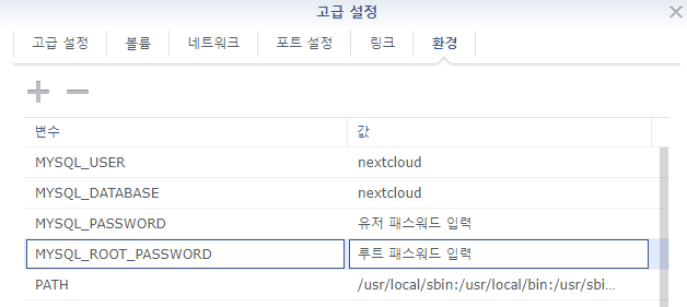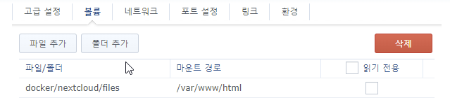 • Nextcloud 컨테이너가 다운될 경우, 버전을 낮추어서 이미지를 다운 받으시기 바랍니다.