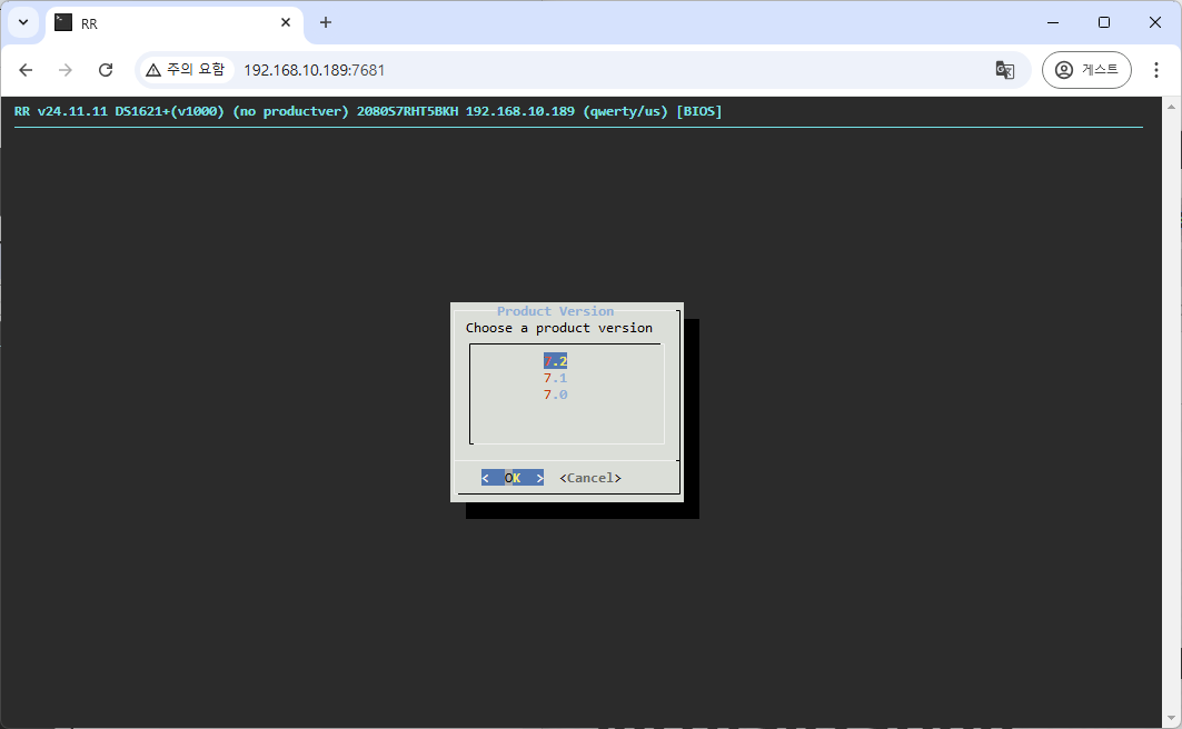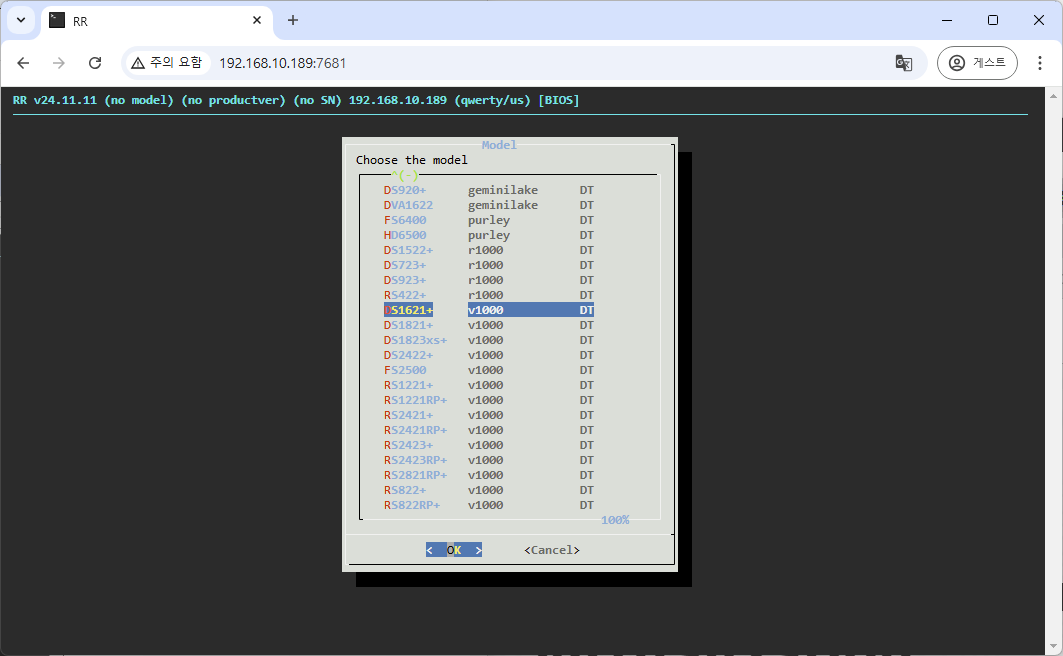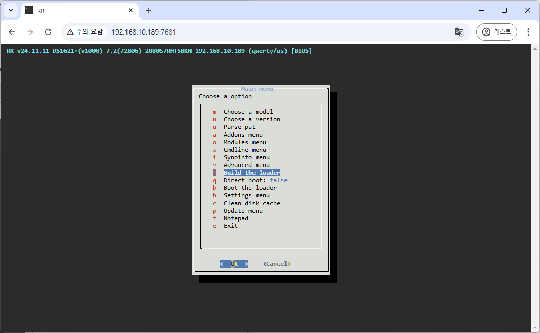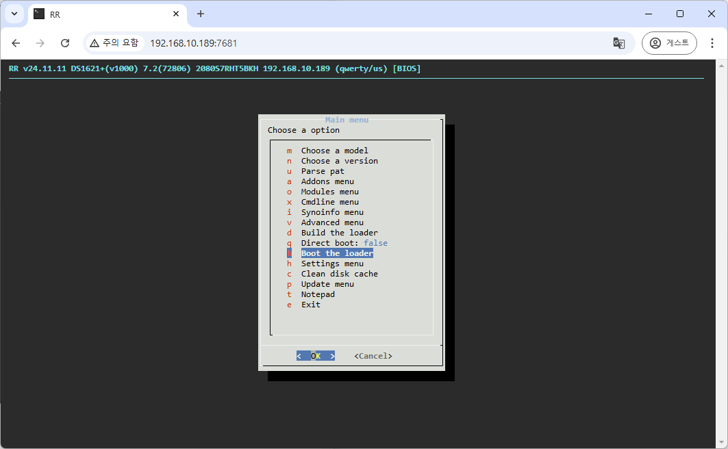 8. model 선택 > product version 버전 선택 > pat 버전 선택 > confirm URL (그냥 엔터) > build the loader > boot the loader 순으로 진행합니다.