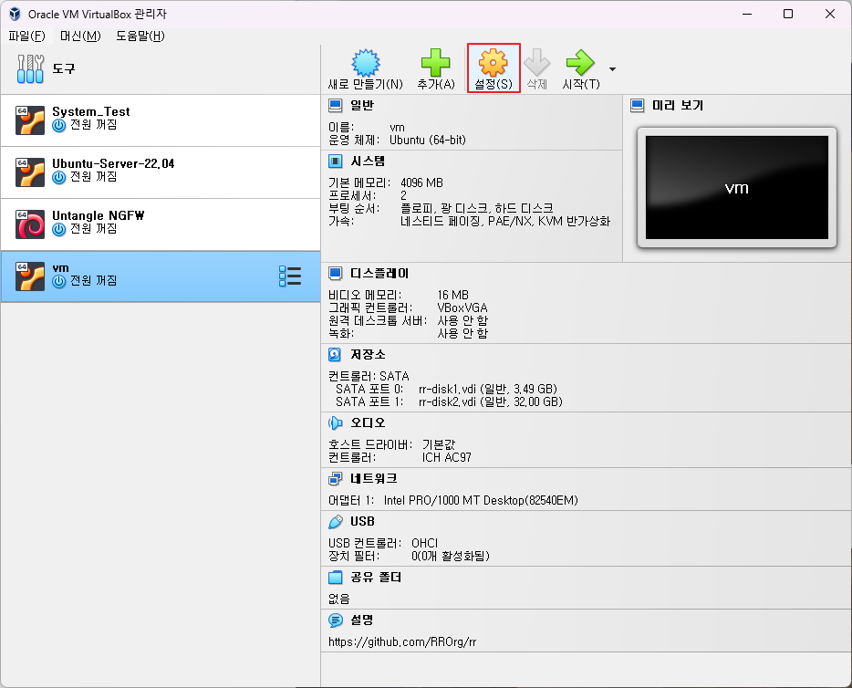 VirtualBox 및 OVA 가져오기(세팅)