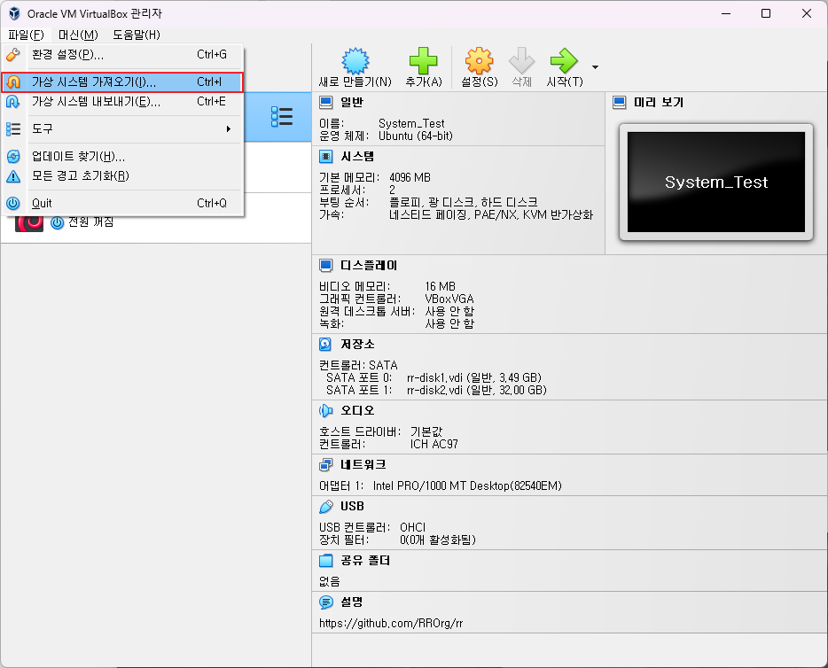 Github를 통해 다운받은 RR의 OVA파일을 통해 VirtualBox나 VMWare에서 가져와 체험해 보는 과정을 다루어 보겠습니다.