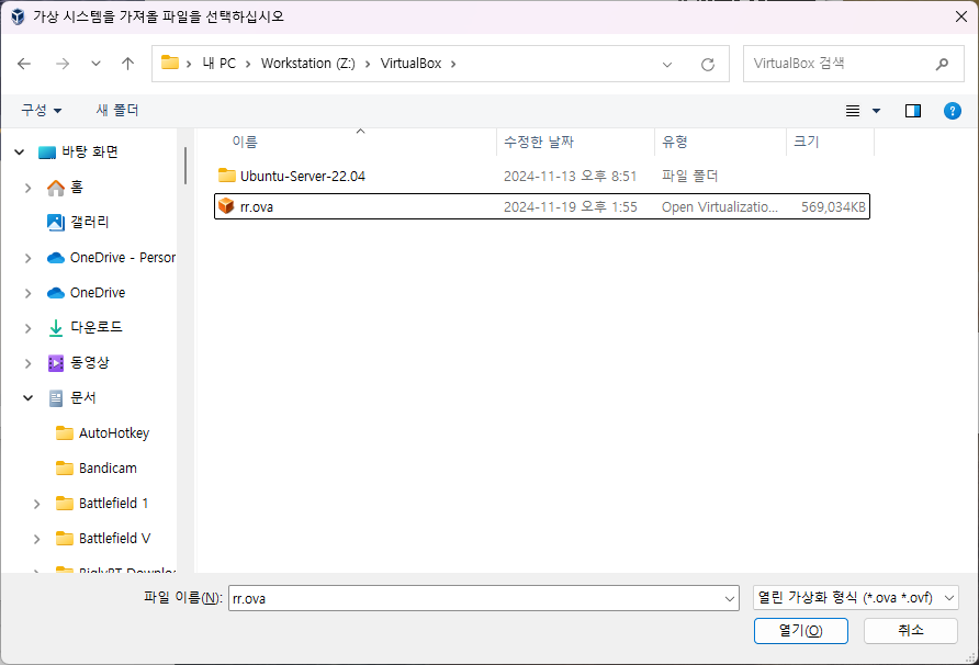 VirtualBox 및 OVA 가져오기(세팅)