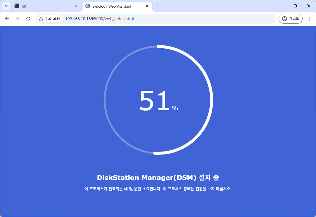 9. Reconnect를 누른뒤 새창을 띄워 http://아이피:5000 으로 접속하면, DSM 초기 세팅 화면을 확인 하실 수 있습니다.