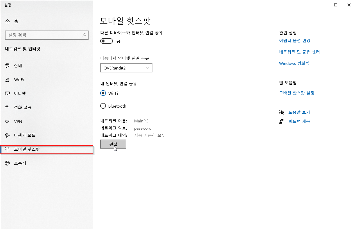 - PC에서 무선 핫스팟을 활성화 할 수 있는 방법(영문)