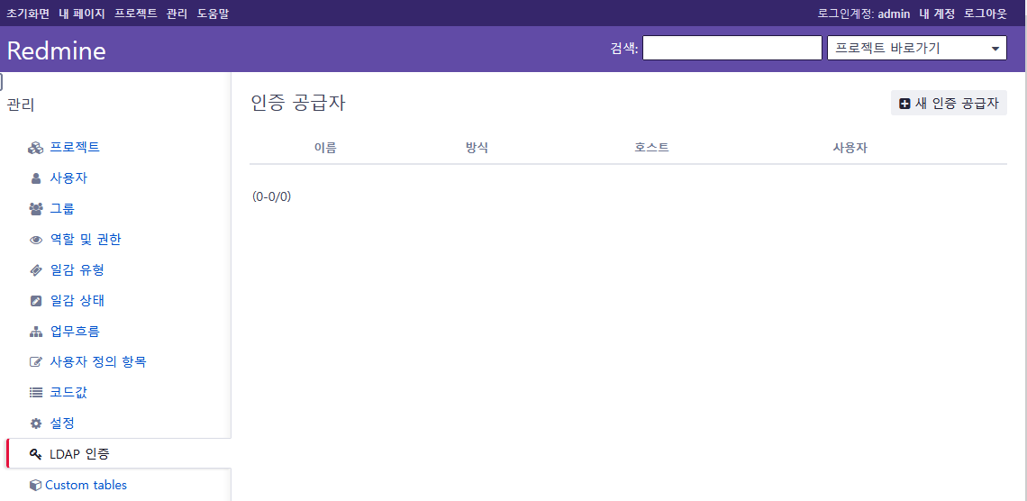 1. 관리 > LDAP 인증 > 새 인증 공급자 추가 클릭