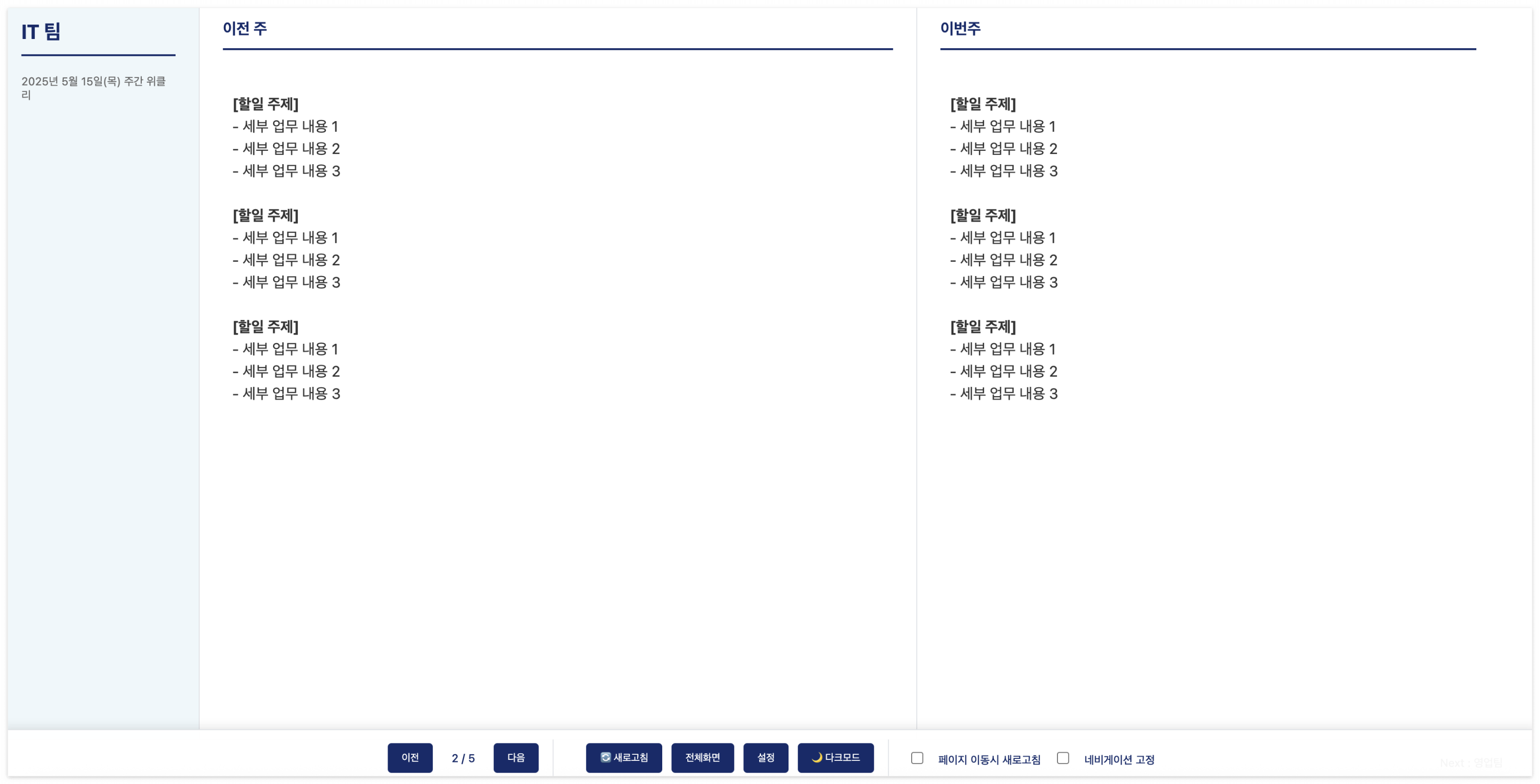 간단히 주간회의를 요약하여 리뷰할때 사용하는 목적으로 제작 하였습니다.