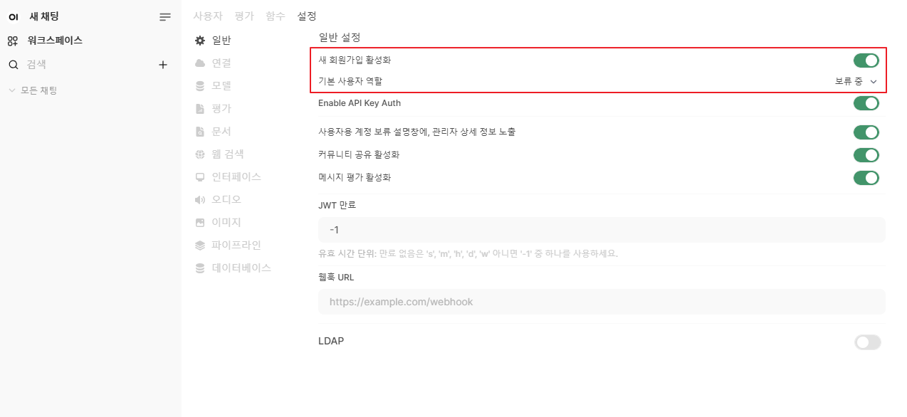 - Open WebUI에서 사용자 등록 허용