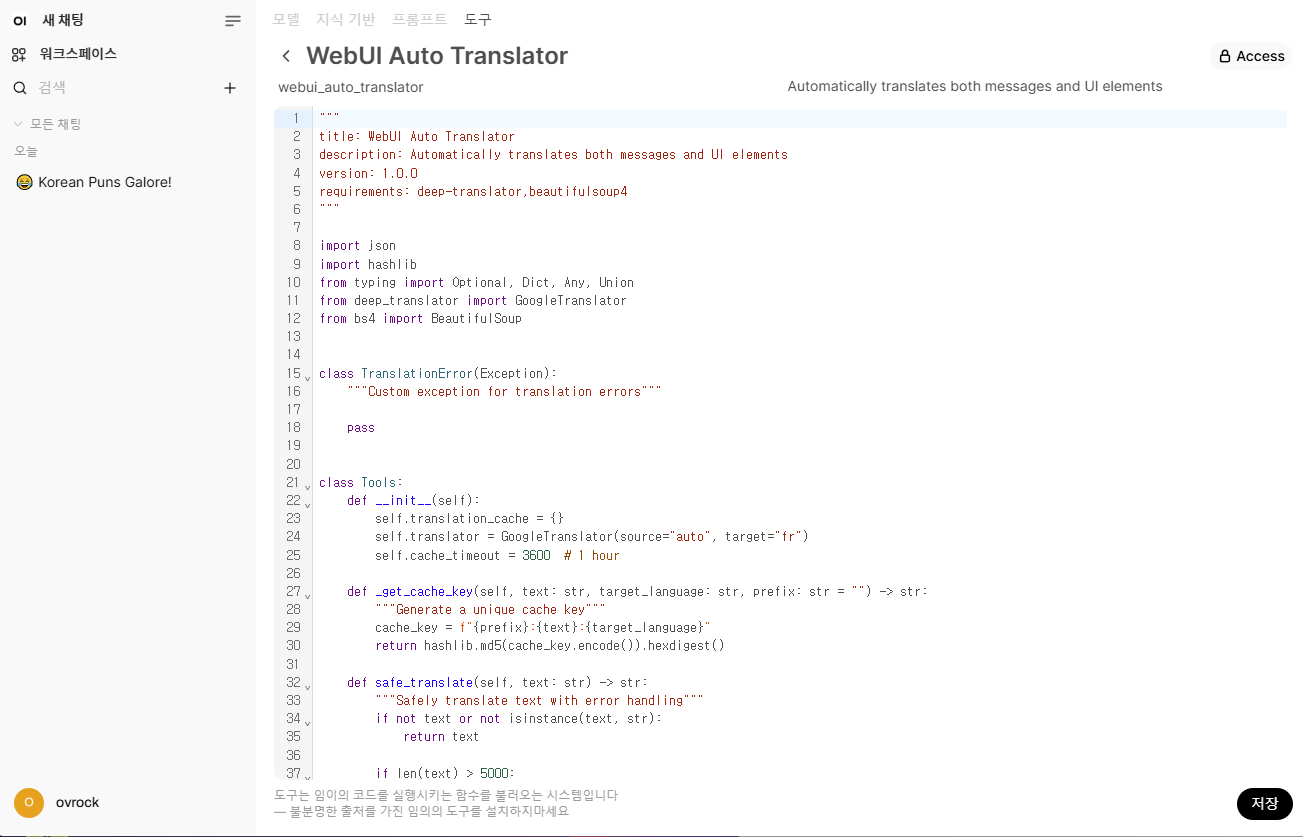 - Auto Translator : 구글번역을 통한 정확도 향상 - https://openwebui.com/t/nnaoycurt/webui_auto_translator