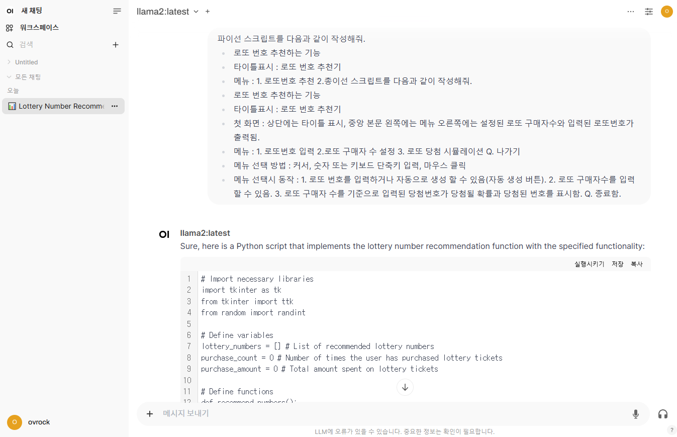 - Ollama: Meta에서 제공하는 오픈소스 LLM(Large Language Model) 솔루션