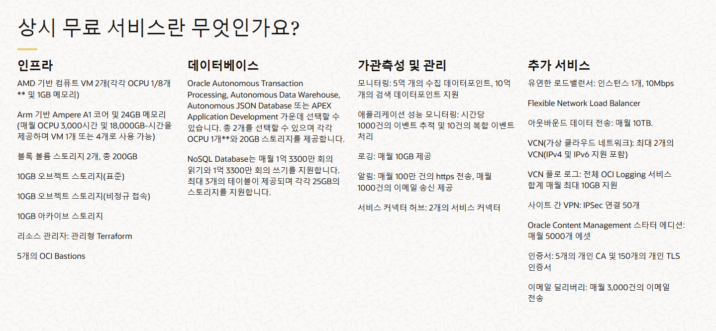 - https://www.oracle.com/cloud/free 에 접속하여 가입