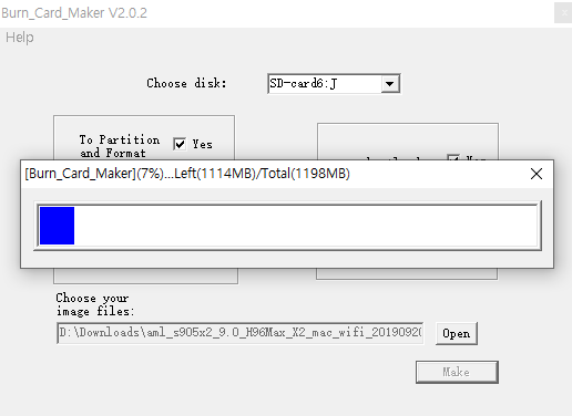 3. 이제 펌웨어 생성하기 위해 SD카드를 컴퓨에 연결해주시고 다음의 옵션을 선택해주고 Make 버튼을 누릅니다.